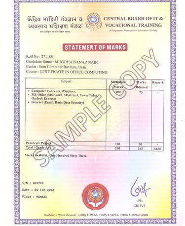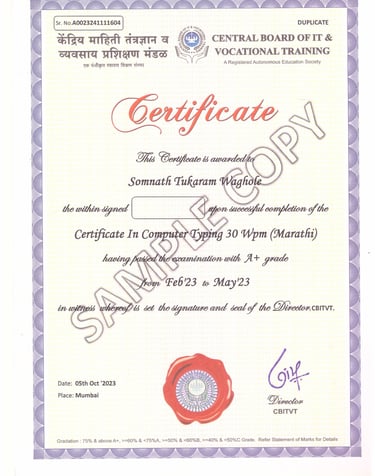 The certification from Central Board of IT & Vocational Training greatly enhanced my career opportunities and skills.
