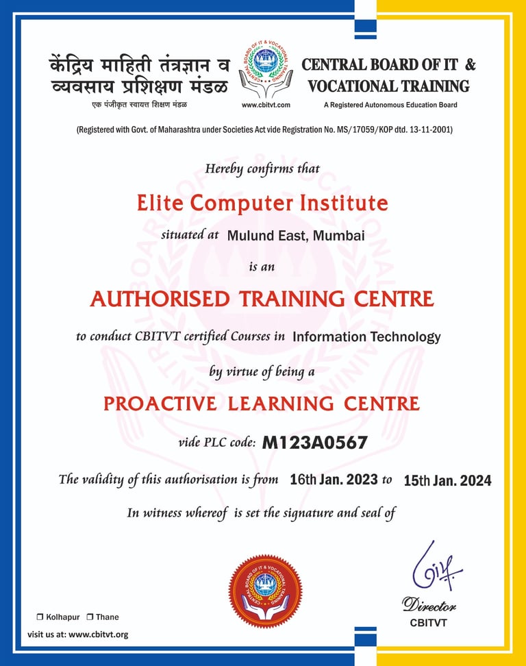 Central Board of IT and Vocational Training (CBITVT) is an independent society registered with Govt. of Maharashtra under Societies Act with the sole aim of providing quality education and vocational training to aspiring young students.